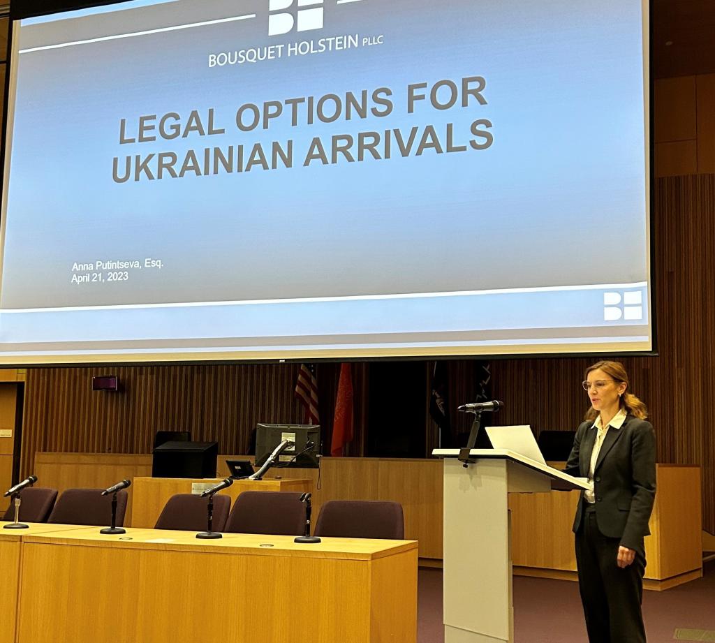 At the symposium, Rebecca Cohen will be a panelist sharing about her volunteer experience and Anna Putintseva will present on Legal Options for Ukrainian Arrivals. Anna and Rebecca actively provide pro bono representation through the CNY Volunteer Lawyer’s Project’s Immigration clinic.